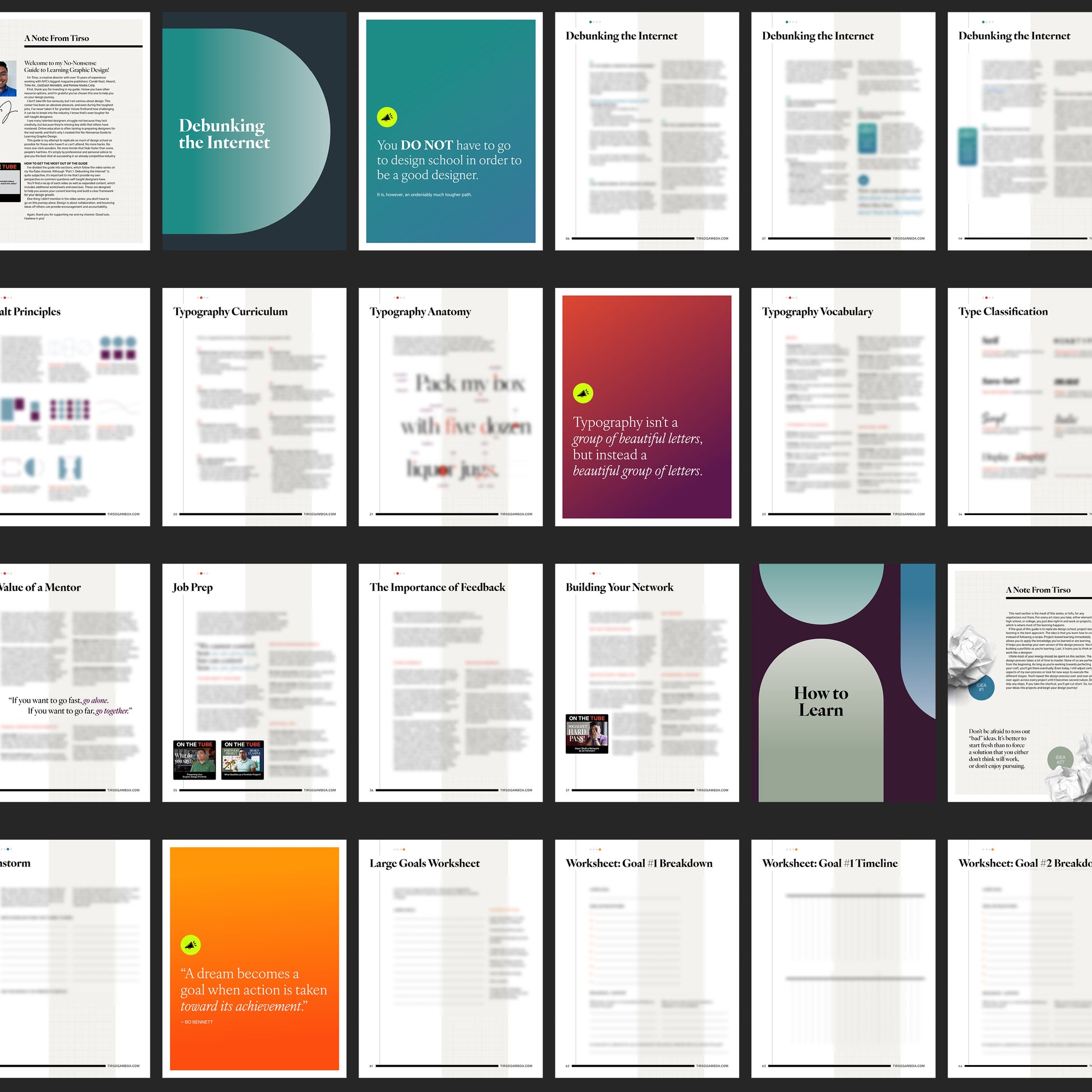 Struggling to learn graphic design on your own? Take some of the guesswork out with this 74-page guide (instant download). It will help you curate your learning path with clear explanations, practical worksheets, and actionable advice from creative director Tirso Gamboa. Designed for self-taught designers, it helps you build skills and avoid common mistakes, and, if implemented correctly, will give you the best shot at success in this industry.